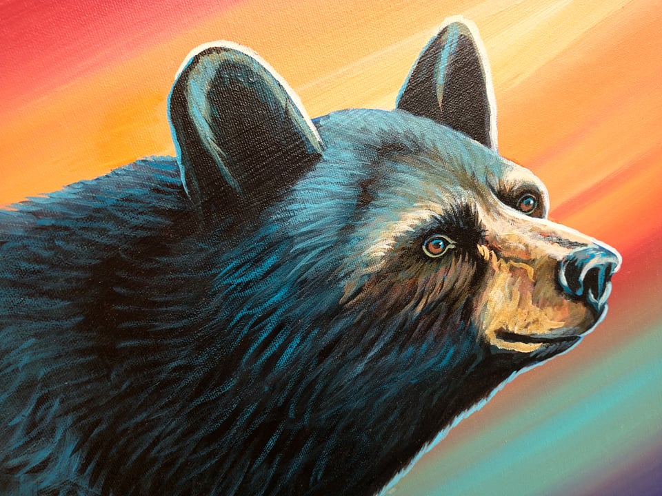 Black bear staring ahead of him, Original by Ron Disbrowe